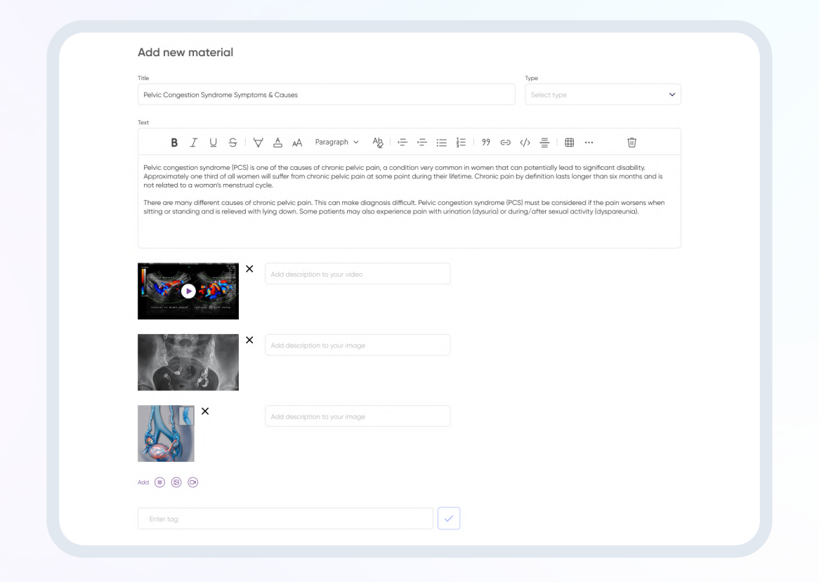 At the core of the platform is an advanced generator of questionnaires specifically tailored for disease diagnosis. These intelligent questionnaires facilitate the systematic and accurate identification of various diseases, including Pelvic Congestion Syndrome and others. By leveraging the power of data-driven algorithms, the questionnaire generator ensures thorough assessments to guide healthcare providers in making informed decisions.
